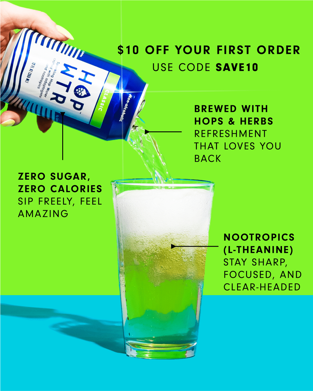 Refreshing and hydrating, HOPWTR is packed with Citra, Amarillo, Mosaic and Azacca hops to remind you of your favorite IPA as well as feel-good adaptogens and nootropics, all with no calories and no sugar. And for a limited time, you can save $10 on your first order with code SAVE10.